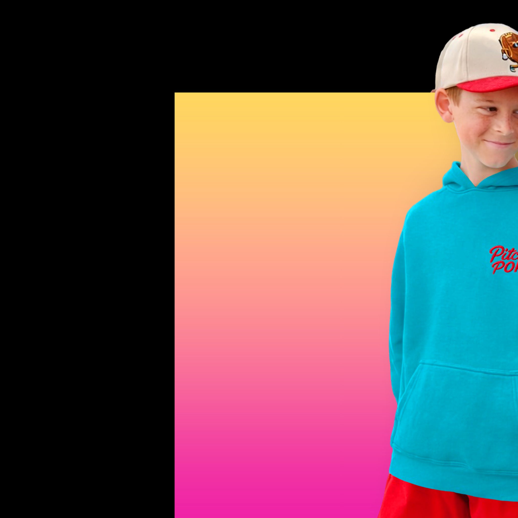 So, we created Pitch Pop– a streetwear brand built for future stars. Every piece is inspired by the culture of youth baseball: bold colors, fresh designs, and styles that move seamlessly from game day to every day.